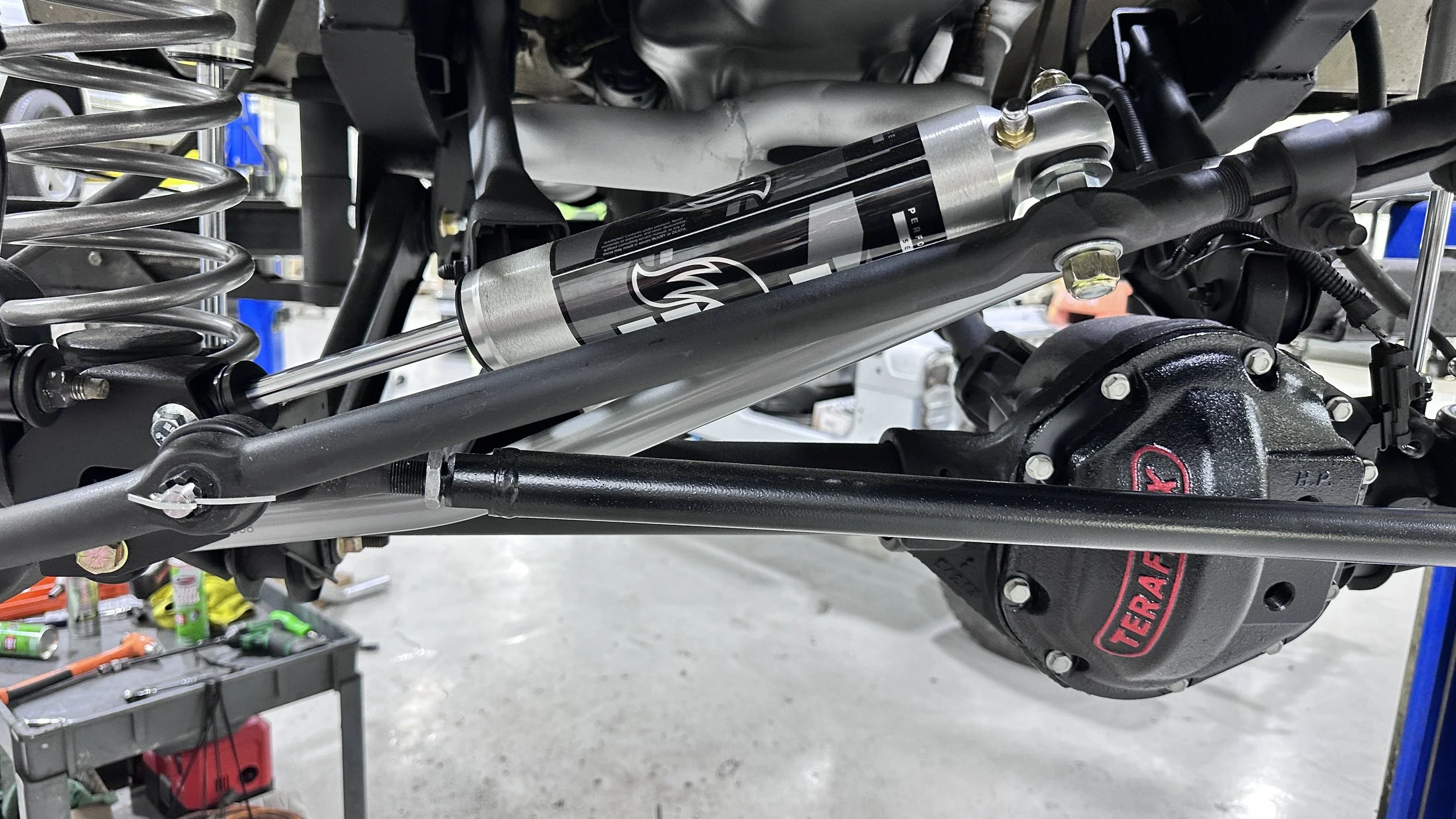 PLEASE NOTE IN THE VIDEO, OUR PROCESS OF INSTALLING OUR SUSPENSION AND STEERING WITH US DROPPING AXLES, DRIVESHAFTS, ETC FROM THE BOTTOM OF THE JEEP FOR A COMPLETE MEDIA BLAST AND REFINISH SERVICE.
