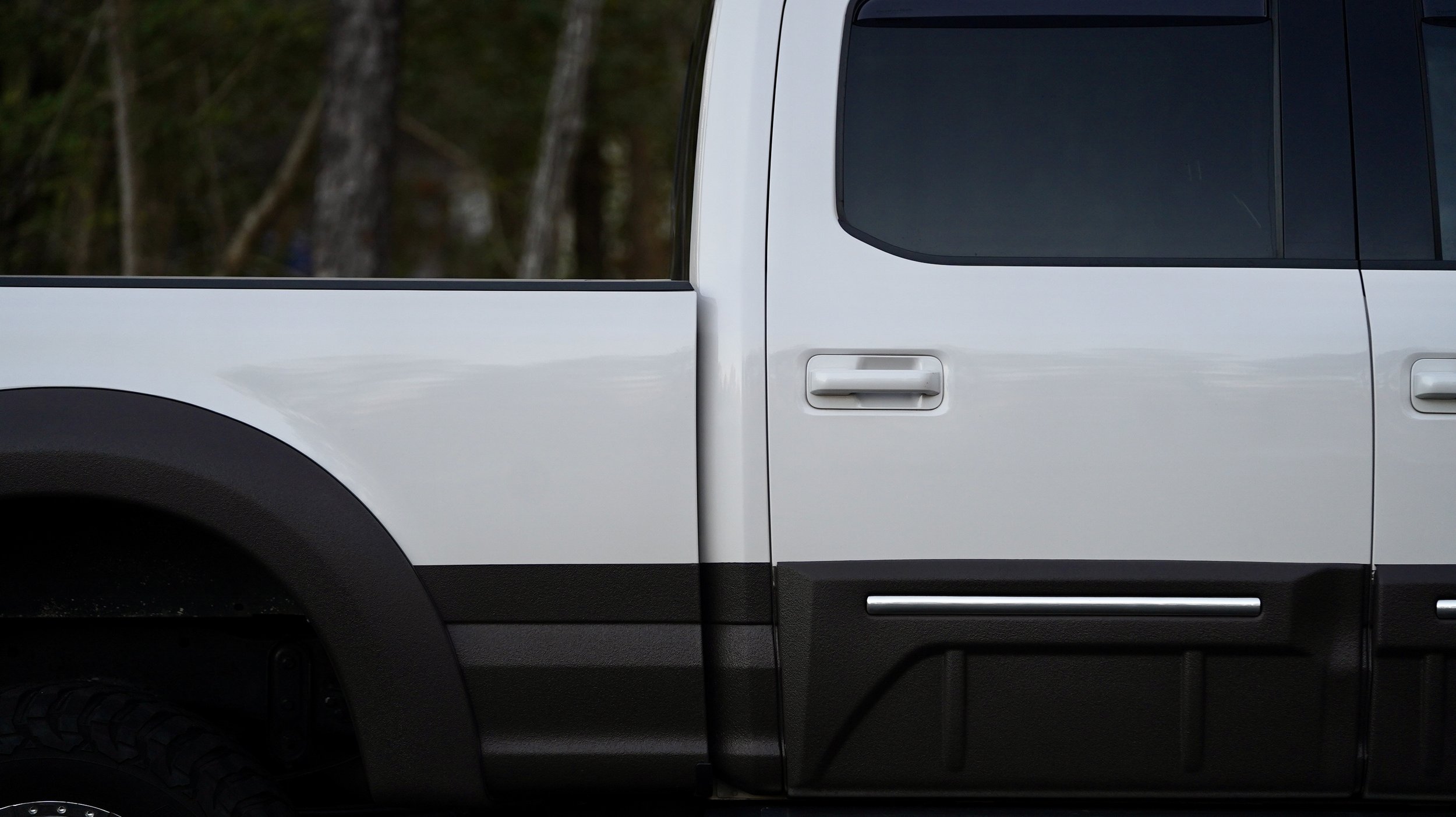 The exterior of this truck shows very well as shown in the photos and video below. This truck looks very sharp in pesos. The Paint is NOT the basic plain white, its the tri-coat pearl which looks great against the brown cladding. The paint is in great condition with no issues. The cladding looks great and has only 1 small chip in the front bumper. The bed has the matching brown liner sprayed which makes everything flow well as oppose to a black liner. The 37” BFG tires have a ton of life left and the 20x10 chrome wheels show no pitting. The undercarriage is also very clean as shown.