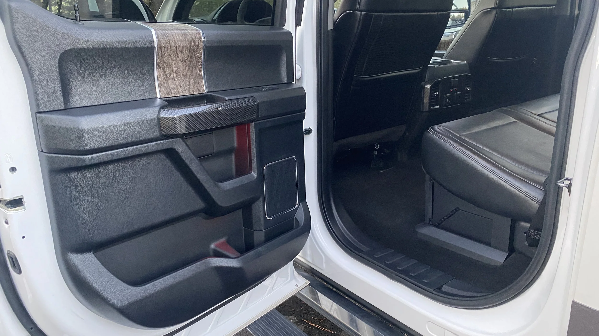 The interior of this F250 is 100% loaded with evert single option Ford offers, its pure luxury from pano roof, to AC/Heated Seats to full Camera View for easy driving and towing. The interior has some nice Carbon Fiber Panels to give it a sporty feel. The leather shows very well for the miles as does the entire interior. Check out the photos and video below for a full review.