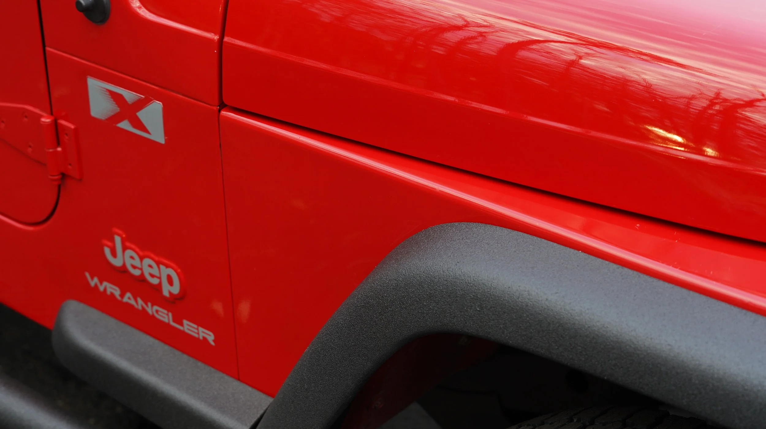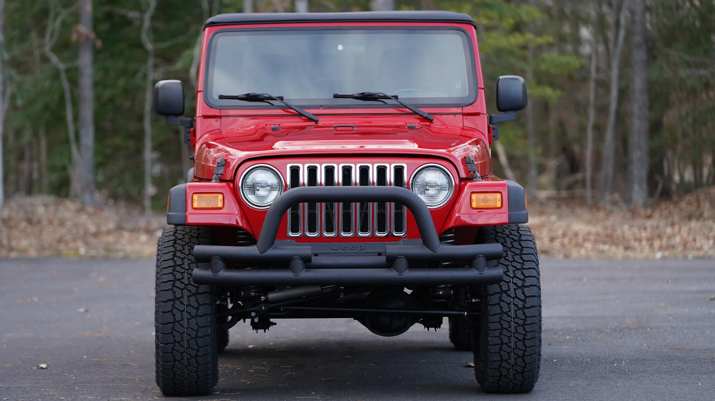 The paint and body on this Wrangler is unlike any other TJ you will find. First, the previous owner took incredible care of this jeep. Durning our reconditioning process we performed a full paint correction service on this Jeep, there are details in the video about this process. The paint process is a 4 day process alone. In addition to the paint correction, we refinished all fender flares, dood handles, etc in either Black Kevlar or automotive paint.