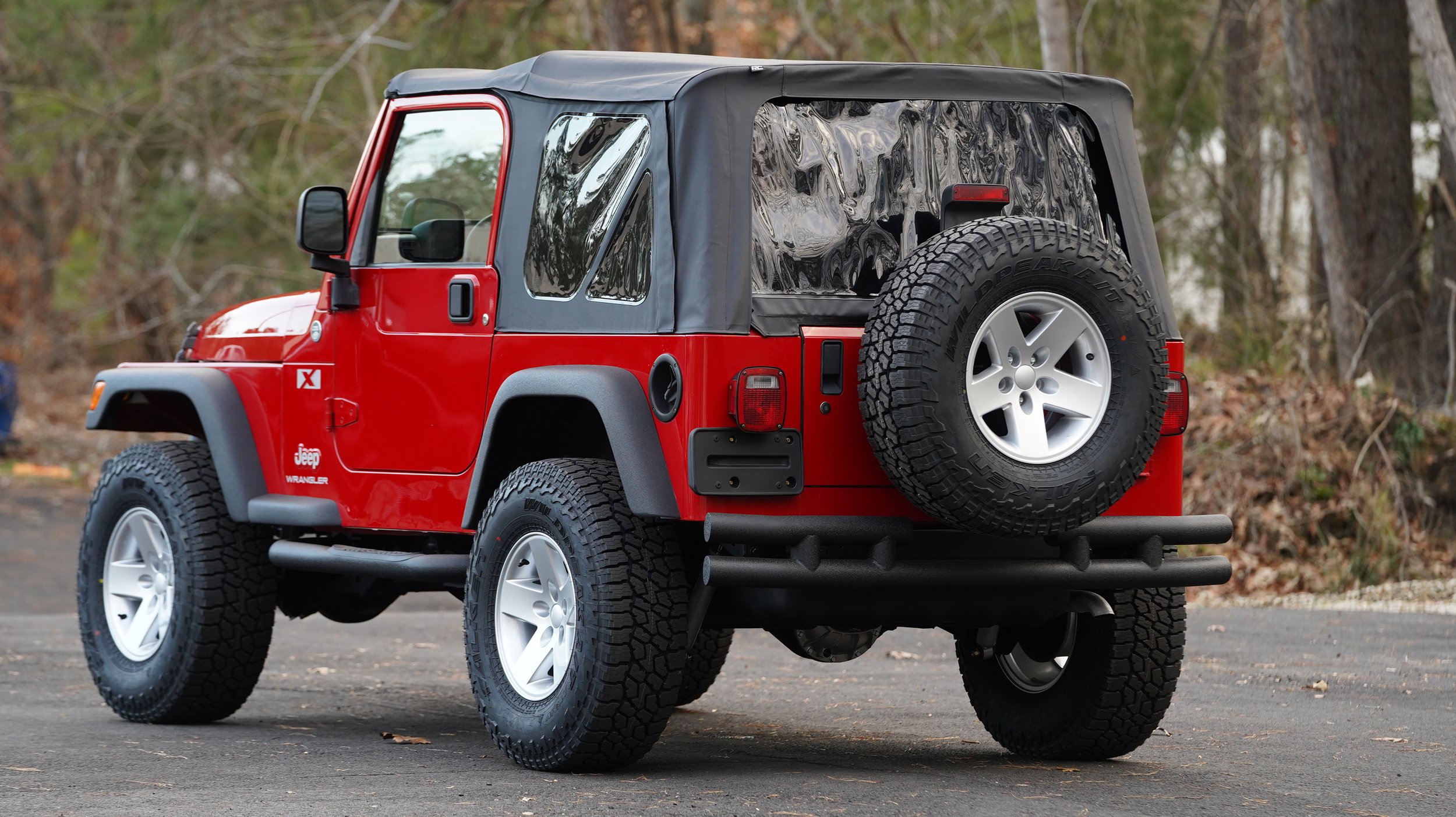 The exterior of this Jeep is in AMAZING condition for the year and has been well cared for. The paint has a PERFECT shine and PERFECTLY smooth finish. I tried to include as many pictures as possible so you can see the true condition of the TJ.....This Wrangler is Simply STUNNING in person. You will be more than impressed with with the condition of exterior. We have over 100 pics below as well as a FULL 4k HD video, please view all photos and entire video. The previous owner garaged kept this Jeep since day 1 of ownership. Durning our Restoration process, we FULLY PAINT CORRECTED the entire Jeep and the paint is simply stunning. Much the exterior, bumpers, wheels, tires, etc is all new so of course they are perfect. Our goal with this jeep was to make this slightly modified yet classy Wrangler. Please view entire video for a full description.