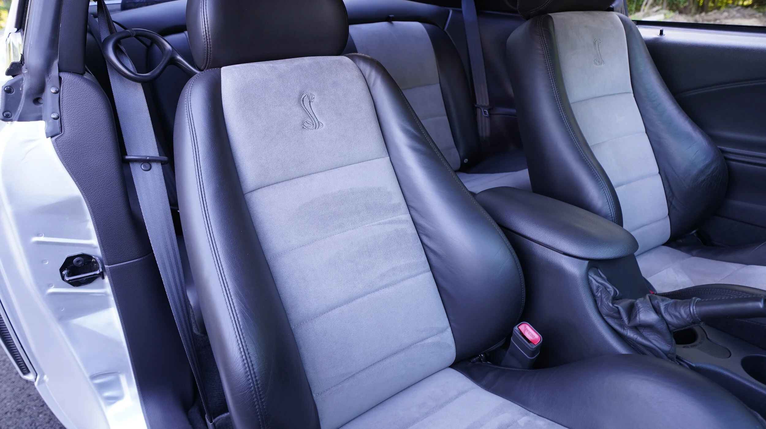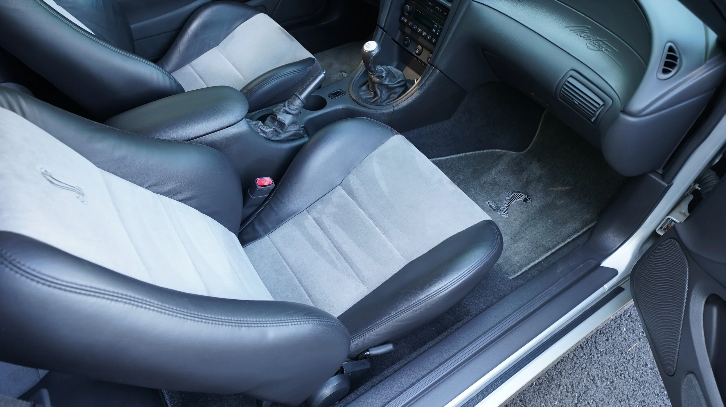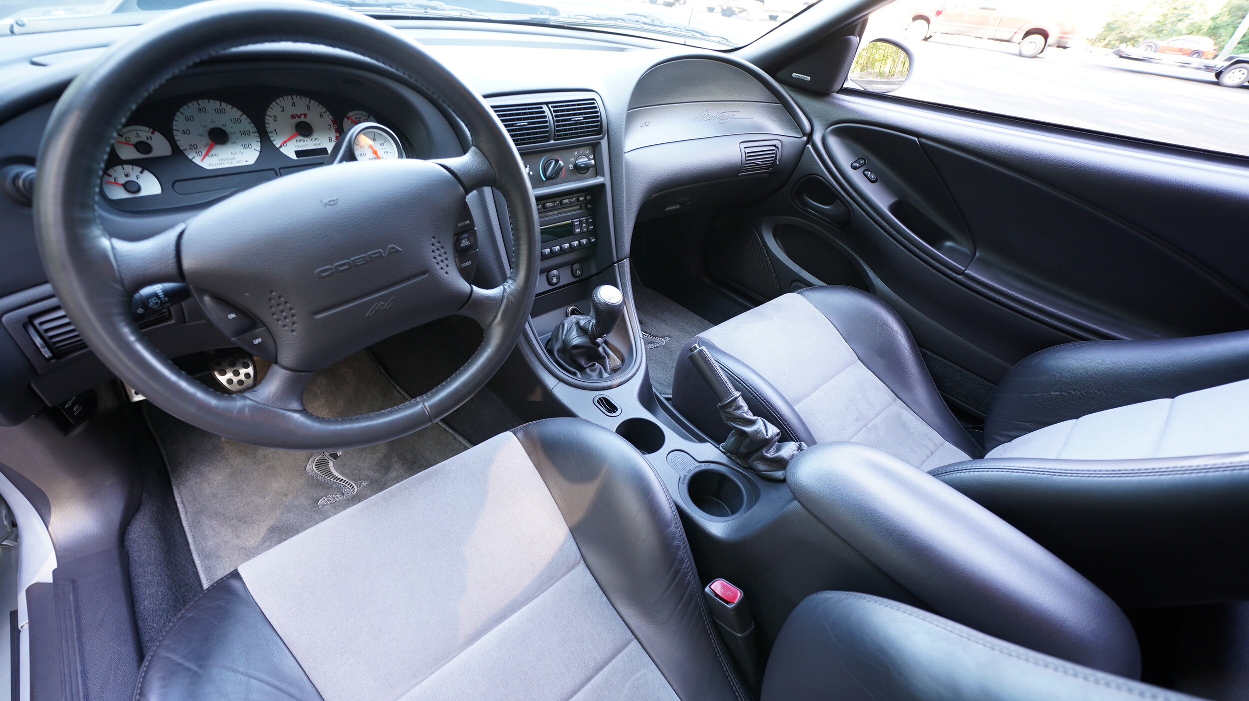 This interior of this SVT is simply stunning. The previous owner took impeccable care of this interior and it shows amazing well. Make sure to view the 4k Video for a full condition report. The seats are very impressive as the seats in this generation mustang typically show a lot of wear which is NOT the case here. The owner treated these seats as well as the other soft materials throughout this ownership and has done a great job doing so. The factory carpet and factory floor mats are literally perfect with no issues and look incredible. As show in the pics, the entire dash and control panels are 100% perfect.