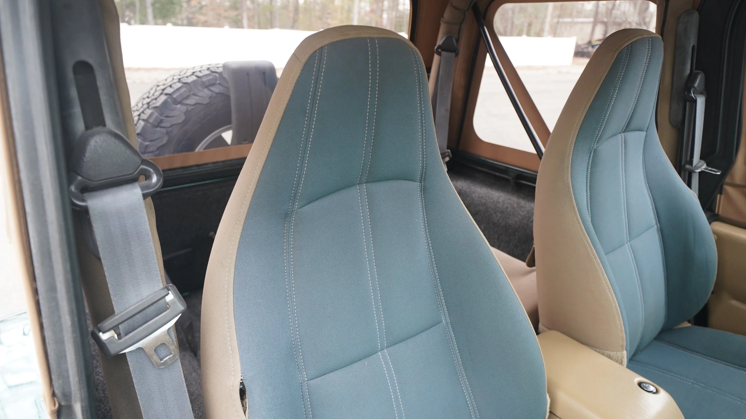 The Interior of this Wrangler is in Exceptional Condition for the year and miles!! The seats show well for a 1999 as shown. All dash areas and door panels are Extremely Clean as you will see in the photos. The entire AC and heat system work great. The photos below will show EVERY part of the interior so you can see for yourself how Clean and Very Well Kept this Jeep truly is!! This 4x4 comes with AC, Manual Transmission, Padded Roll Bars, Folding Rear Seat and a few more options!! Please keep in mind this is a pre-owned vehicle and will show some minor wear. It's obvious the previous owners took great pride in keeping this Jeep as clean & maintained as possible!! Please view all pictures to see the truly Amazing Condition of this Jeep!!